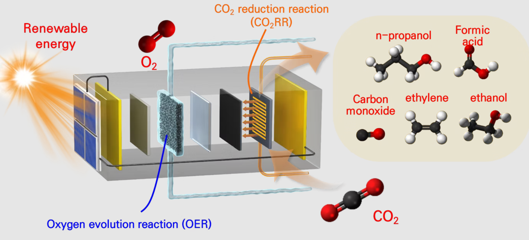 redox reaction: CO₂ reduction reaction (CO₂RR) and oxygen evolution